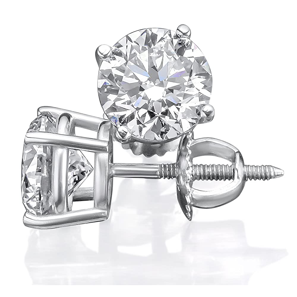 3 ct Moissanite Stud Earrings Simulated Diamond Round Cut Earrings For Women Certified 18K White Gold 4 Prong [DE Color, VVS1 Clarity]